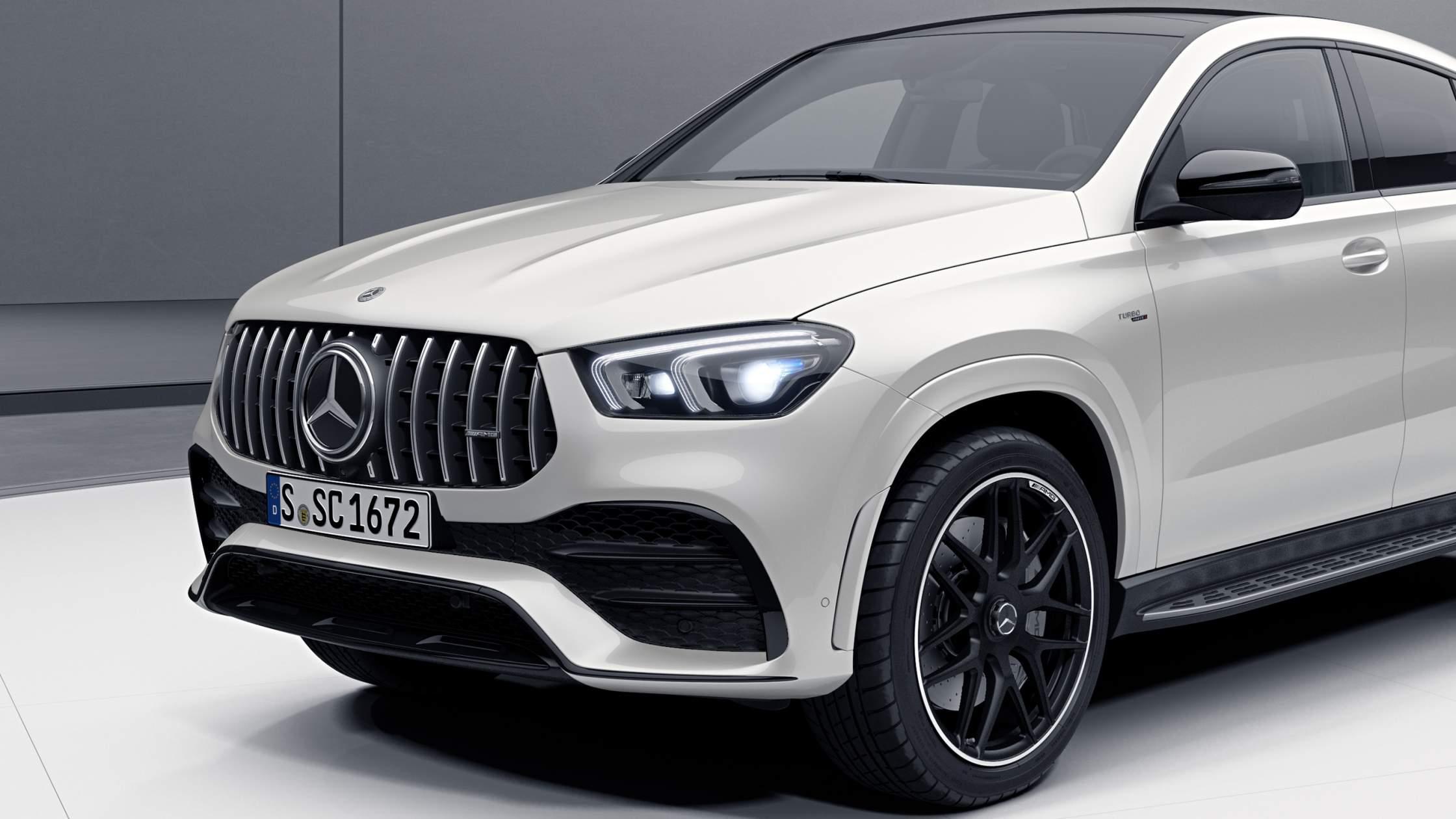 Mercedes’s GLE-class SUV ditches the Benz branding and receives the AMG treatment, which nets the mid-size SUV more power, a performance-oriented suspension setup, and a handful of design tweaks. Mercedes-AMG offers its GLE-class models in both wagon and fastback body styles, as well as in GLE53 and GLE63 S guises. The former packs a 429-hp forced induction straight-six under its hood, while the latter relies on a 603-hp twin-turbocharged V-8 for motivation. Both come standard with all-wheel drive. Despite their lesser cargo capacity, the hunchbacked Mercedes-AMG GLE53 and GLE63 S Coupes sticker for more than their squareback counterparts.